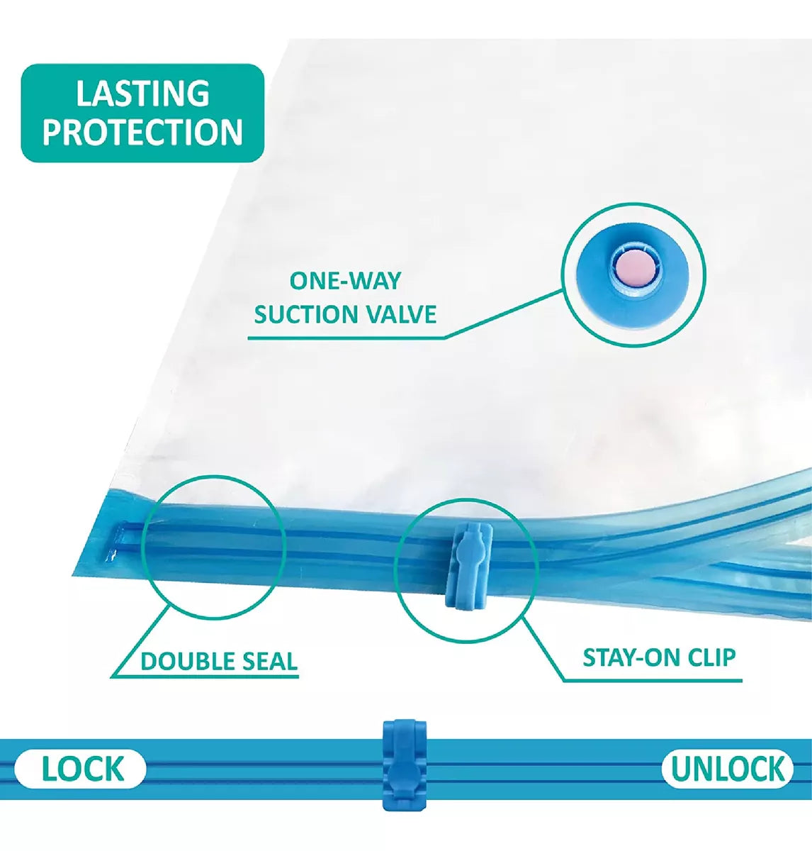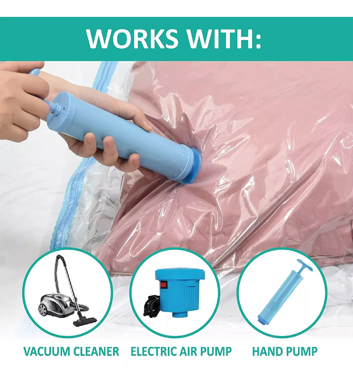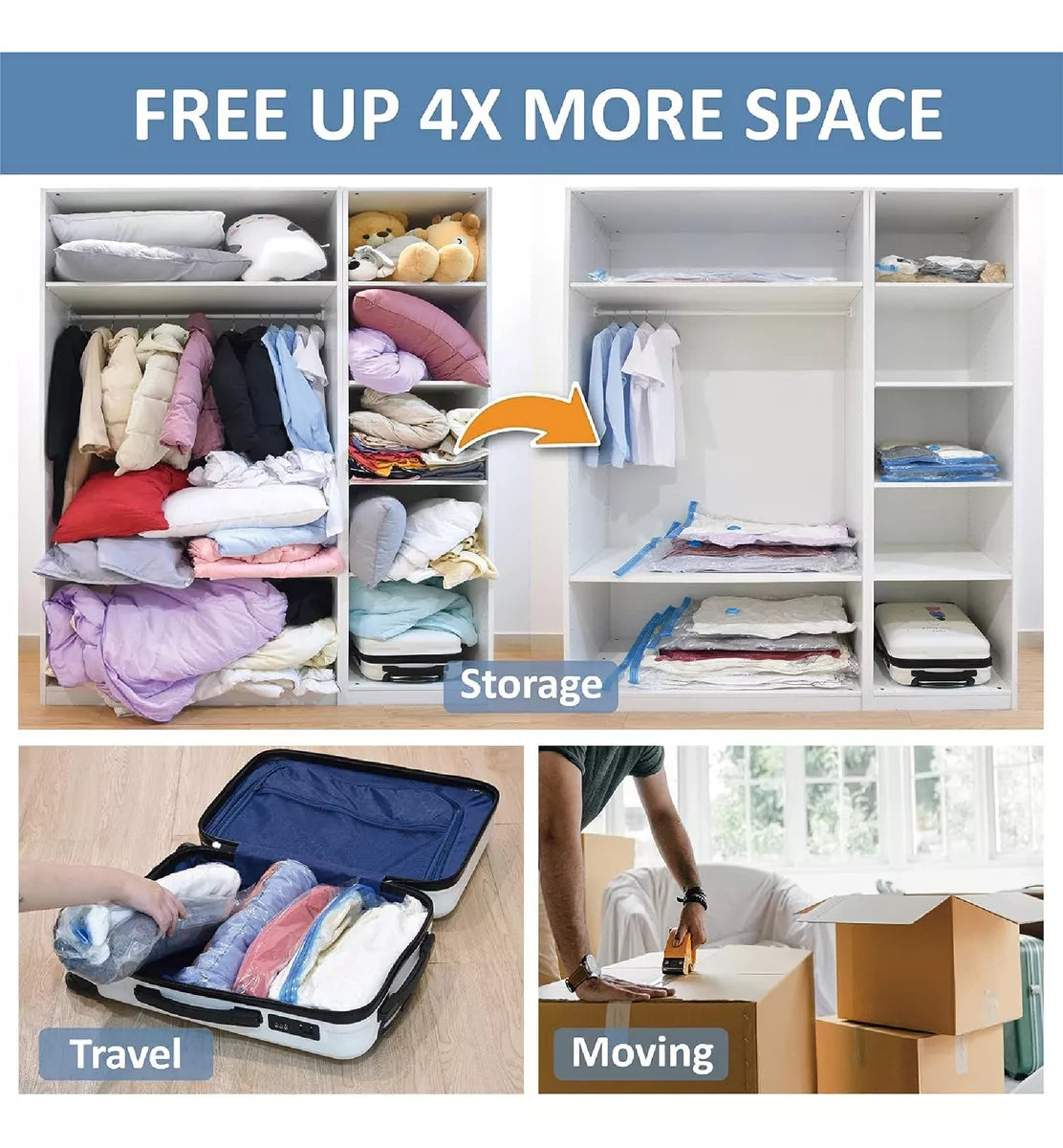 Guardar espacio de almacenamiento: 3 tamaños diferentes de cubierta de almacenamiento de vacío, muy adecuados para moverse y fácil de almacenamiento de ropa, toallas, ropa de cama, peluche, etc. Ahorre hasta el 80% del espacio.